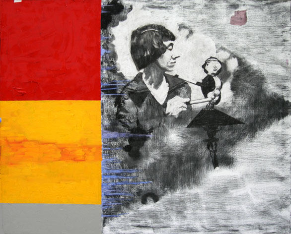 – Som barn var det rokokoprinsessor, bokmärkesänglar, filmisar som gällde. Man skapade sig själv genom att klistra och tejpa, satte fel huvud på fel kropp. Allt på fullaste allvar. De blev ett slags stöd genom livet. Sedan far dessa bilder genom vuxenlivets och konsthistoriens tratt och genom decennier av umgänge med oljefärg och kol. De senaste decennierna har det kommit till mig från andra håll. Jag slutar inte att umgås med mina avantgardistiska damer, säger Kerro Holmberg som själv berörs och påverkas av dessa kvinnor hon målar, porträtterar och berättar om. Det är målningar som skapar associationer och närhet till personligheterna.