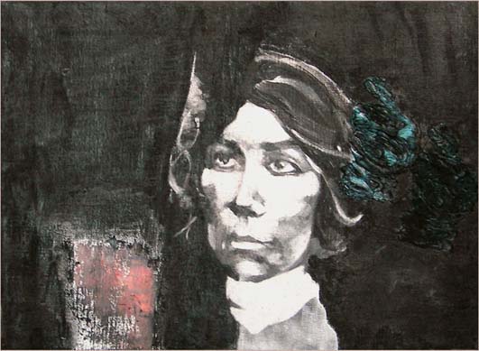 Elena Guro mot mörkt/Elena Guro against the dark 2007 oil and charcoal on canvas 40 x 55 cm