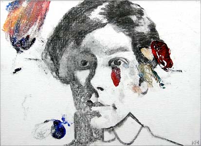 Natalia Goncharova med spik/Natalia Goncharova with nail 2007 oil, charcoal and nail on canvas 69 x 97 cm